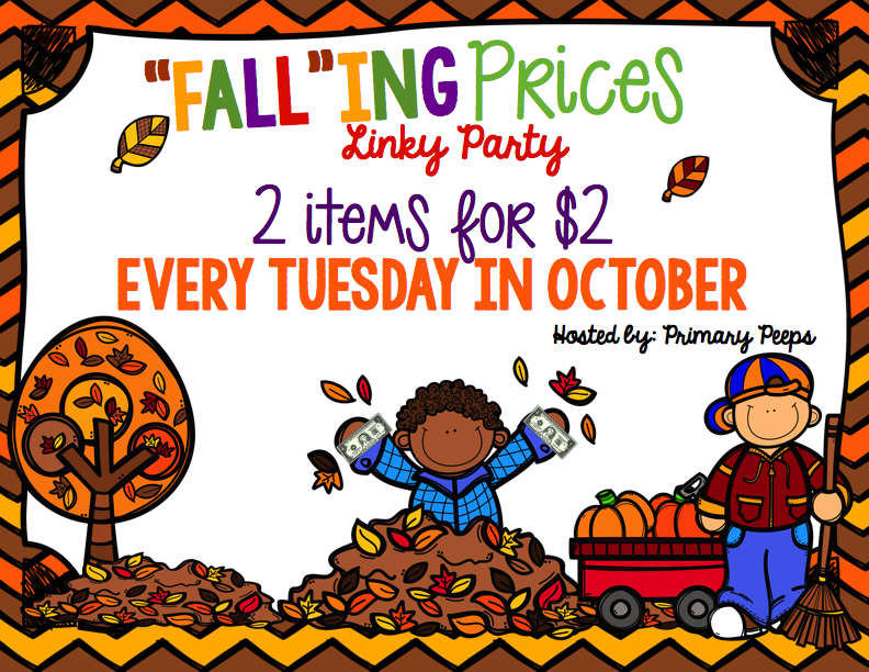 I am joining my dear friends who make up the Primary Peeps for a great sale every Tuesday. Every Tuesday during the month on October, we having "falling prices." Two products from our store are $2. But....you have to act quick because it's only for Tuesday. Special thanks to Laura of A Grace Filled Classroom for organizing this fantastic linky!