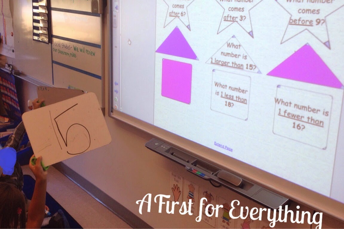 I love using my SMARTboard for math! I am lucky enough to have found every Everyday Math lesson online for the SMARTboard and I use it every day! This week we are learning to compare numbers and the kiddos are using slates (wipe-off boards) to check in.
