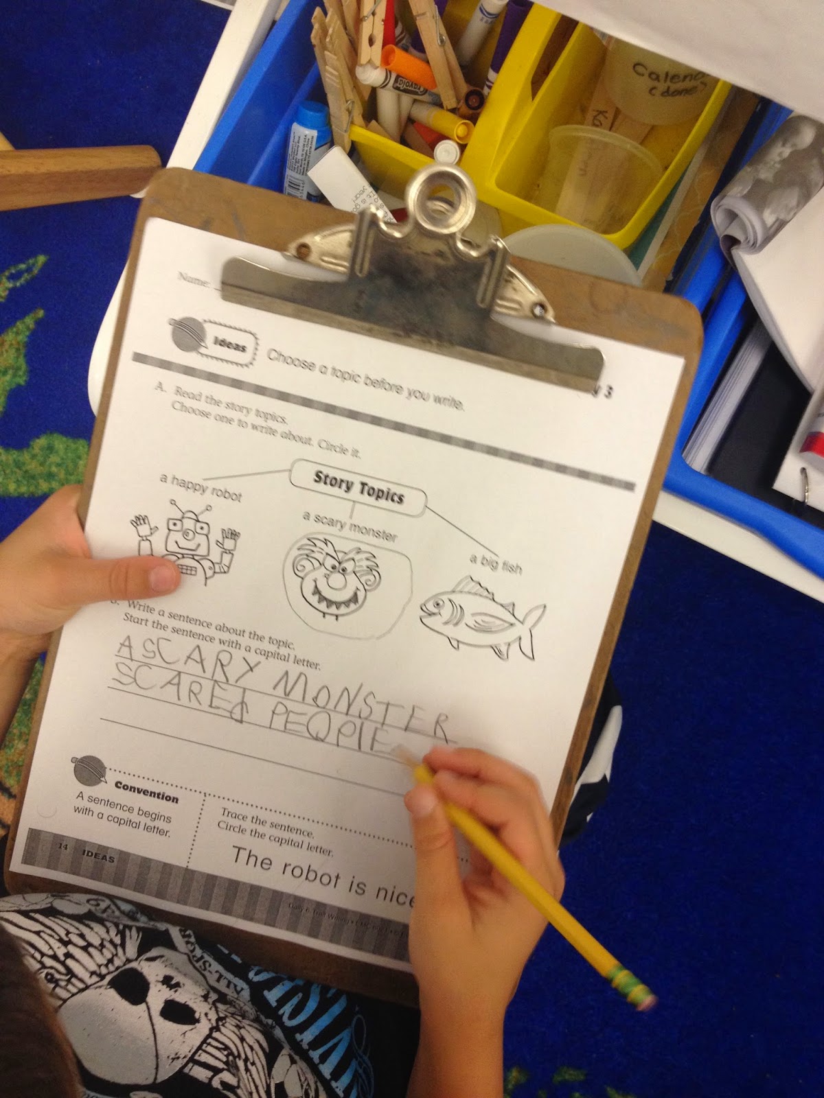 We are still working on the idea trait (6 traits of writing) and the implementation of writer's workshop. We have stalled a bit on the "What to do when I'm done" component of writer's workshop as we learn to not only build stamina for reading, but for writing as well.