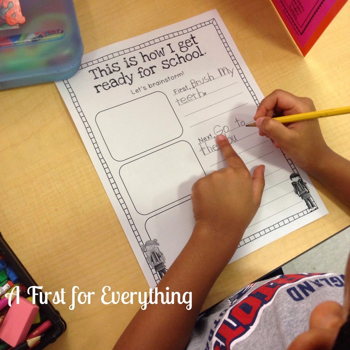 Sometimes, I still give my students a topic to write about such as the example above. This week, we learned how to use the words first, next, and last after we have chosen a topic, to organize our writing. We wrote about how we get ready for school.