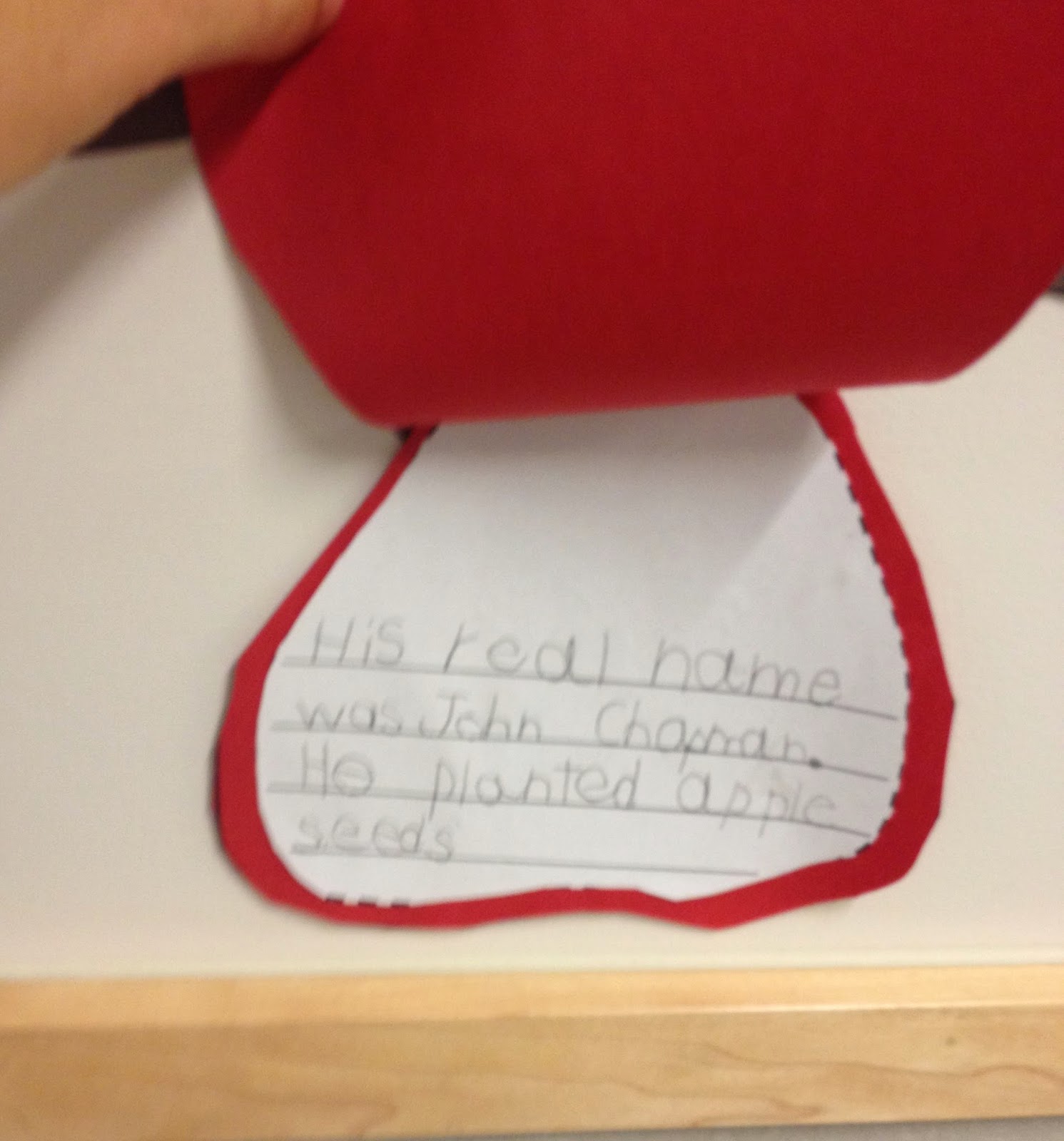 We also learned about Johnny Appleseed this week. After reading nonfiction text we brainstormed some facts about him and created these adorable knapsacks. They open up to reveal some facts we wrote about Johnny Appleseed. This adorableness is from Linda Camp's TPT store.
