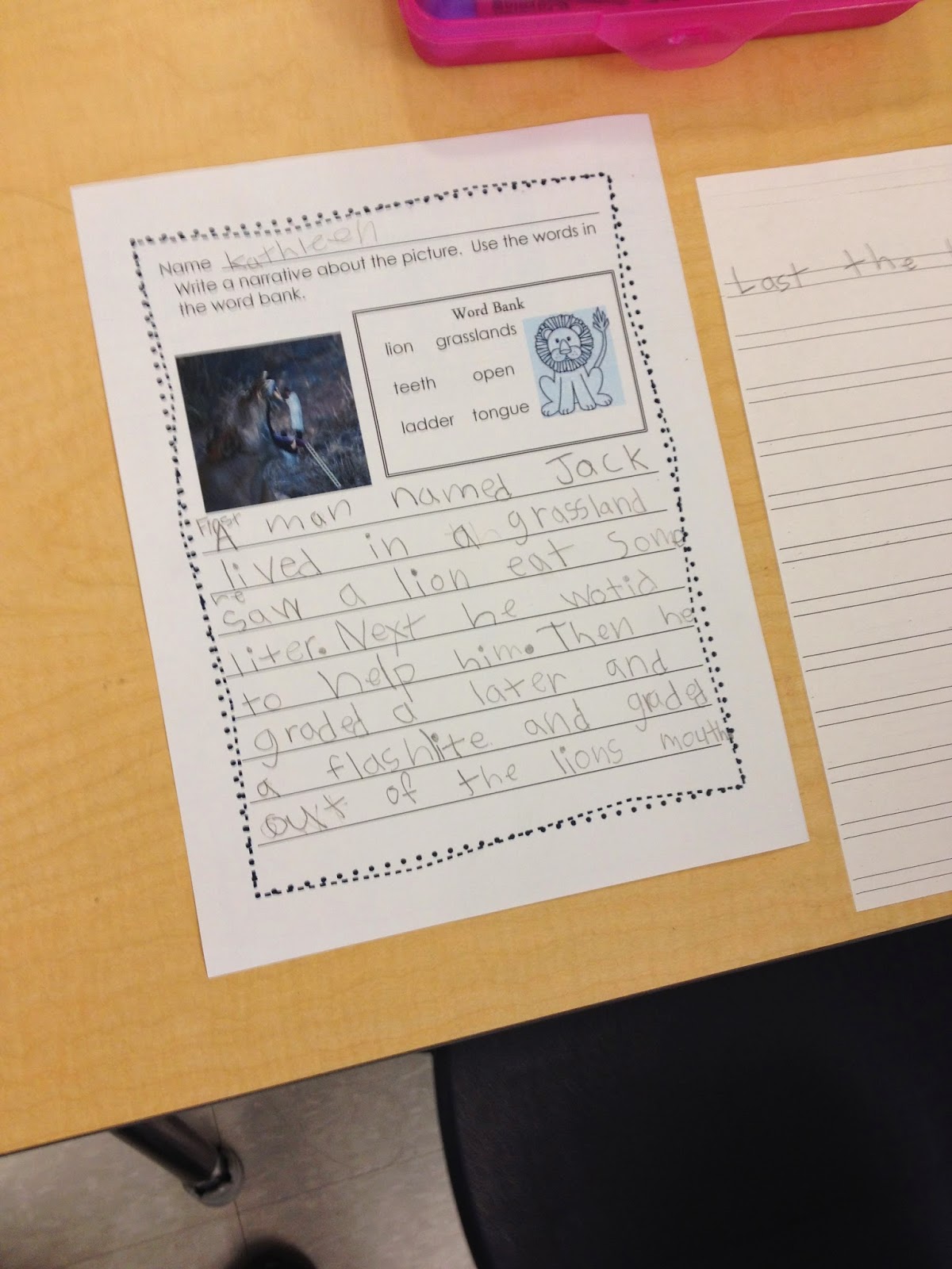 We talked about topic sentences and why we need a great topic sentence to start off our writing. I modeled writing a narrative using the picture prompt and then we brainstormed some topic sentence ideas. I have found that modeling writing makes all the difference! I have been so apprehensive about modeling the writing process too much for fear the kiddos would take my ideas and their creativity would be lost. However, I have been learning that they really need the modeling They rarely use my thoughts. They use their own thoughts and ideas and benefit from the process of learning how their writing should be formatted and organized. I'm really looking forward to see what else they write about using these fun picture prompts!