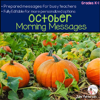 Are you so tired or writing morning messages? These October morning messages are projectable and editable. All you have to turn is turn on your computer and your SMARTboard (or interactive whiteboard) and the whole month's worth of morning messages have been done for you. Best of all....they are editable, so you can type and project your own message and still use the adorable graphics if you like.