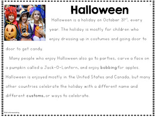 Goodness knows they can't sit still on Halloween! Task cards are a perfect way to keep them learning and still keep them up and moving. You can use these task cards here.